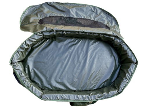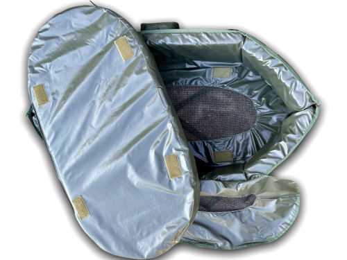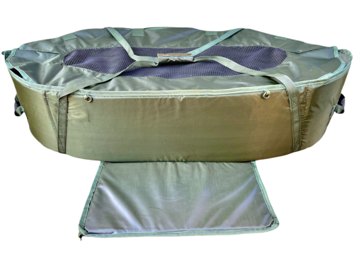 Veľmi bezpečná podložka z kvalitného šetrného materiálu bazenkovitého tvaru. Vnútorná časť rybárskej podložky je extra polstrovaná, odstrániteľná a ľahko umývateľná. Bočné časti podložky sú tiež polstrované, na zips a chránené lemom na každom konci pre ľahké pustenie ryby. Rybu môžete zabezpečiť zatvorením podložky na suchý zips. Vršok podložky je vybavený sieťovinou, aby ste mohli rybu polievať aj vo chvíli, keď je podložka uzavretá a tiež aby ryba mala dostatok vzduchu. Na oboch stranách pevné úchyty pre ľahkú manipuláciu. Aj keď je podložka veľká, môže byť úhľadne zložená pre ľahšiu prepravu. Podložka je opatrená vreckom na meter, váhu či dezinfekciu a tiež podkolienkom! Dĺžka: 100 cm, šírka: 45cm, váha 2,7 kg.