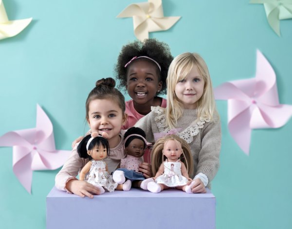Bábika bez zvuku s vinylovým telom a vlásky po celej hlave. Ruky a nohy sú k telu prichytené kĺbom. Bábika je polohovacia a môže aj sedieť. Veľkosť bábiky 28 cm. Ručne vyrobené v Španielsku, balené v darčekovej krabici. Odporúčaný vek od 3 rokov.