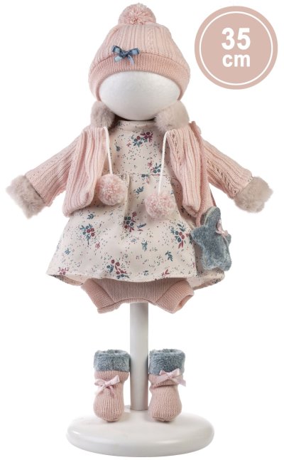 Bábika bez zvuku s mäkkým látkovým telom as vláskami po celej hlave, podobajúce sa malej slečne. Veľkosť 35 cm. Ručne vyrobené v Španielsku, balené v igelitovom obale. Odporúčaný vek od 3 rokov. Tento model je bez oblečenia a preto odporúčame k bábike dokúpiť originálne oblečenie z ponuky Llorens pre bábiky veľkosti 35 cm.