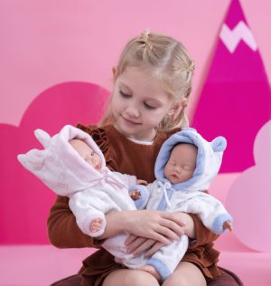 Spiace bábätko bez zvuku s mäkkým látkovým telom. Hlava a končatiny sú vyrobené z kvalitného mäkčeného vinylu. Cumlík v balení slúži iba ako doplnok. Veľkosť 32 cm. Ručne vyrobené v Španielsku, balené v darčekovej krabici. Odporúčaný vek od 3 rokov. K bábätku je možné dokúpiť ďalšie originálne oblečenie z ponuky Llorens pre bábätká NEW BORN veľkosti 35-36 cm.