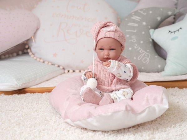 Bábätko bez zvuku s vinylovým telom s možnosťou kúpania, na ktorom je zachytený doslova každý detail detského telíčka vrátane roztomilých bábätkovských faldíkov a pohlaví. Bábätko sa dá kúpať, ale je potrebné dať pozor, aby sa nenamočili riasy. Odlepené riasy nie sú potom dôvodom na reklamáciu. Ruky a nohy sú k telu prichytené kĺbom. Bábätko je polohovacie a môže aj sedieť. Veľkosť 35 cm. Ručne vyrobené v Španielsku, balené v darčekovej krabici. Odporúčaný vek od 3 rokov. K bábätku je možné dokúpiť ďalšie originálne oblečenie z ponuky Llorens pre bábätká NEW BORN veľkosti 35-36 cm.