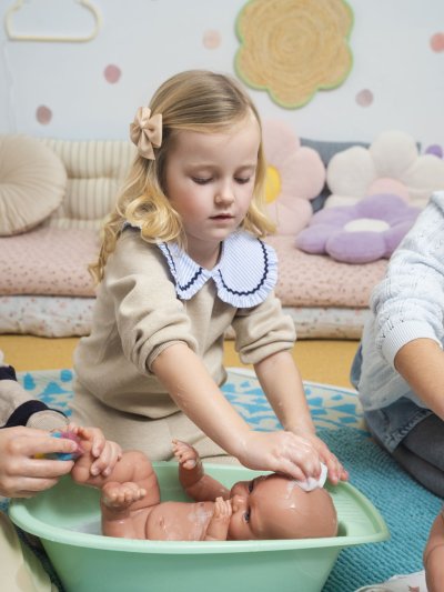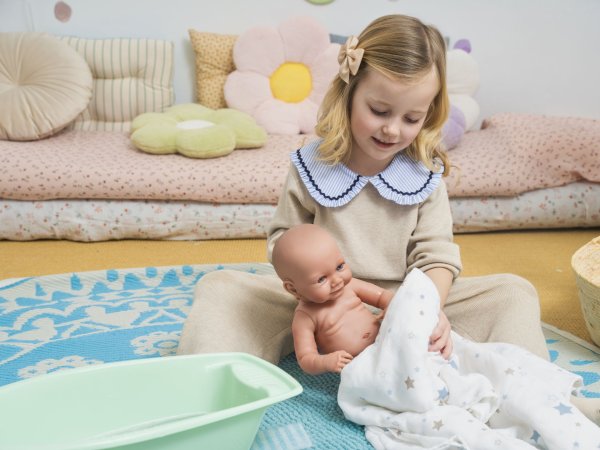 Bábätko bez zvuku s vinylovým telom s možnosťou kúpania, na ktorom je zachytený doslova každý detail detského telíčka vrátane roztomilých bábätkovských faldíkov a pohlaví. Bábätko sa dá kúpať, ale je potrebné dať pozor, aby sa nenamočili riasy. Odlepené riasy nie sú potom dôvodom na reklamáciu. Ruky a nohy sú k telu prichytené kĺbom. Bábätko je polohovacie a môže aj sedieť. Veľkosť 40 cm. Ručne vyrobené v Španielsku, balené v darčekovej krabici. Odporúčaný vek od 3 rokov. K bábätku je možné dokúpiť ďalšie originálne oblečenie z ponuky Llorens pre bábätká NEW BORN veľkosti 40-42 cm.