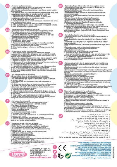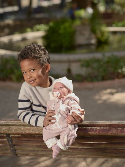 Hovoriace bábätko s mäkkým látkovým telom, ktoré po zatlačení na hrudník začne hovoriť „mama“, „papa“ a vydávať reálny zvuk plačúceho bábätka. Ruky a nohy sú k telu prichytené kĺbom. Bábätko je polohovacie a môže aj sedieť. Cumlík v balení slúži iba ako doplnok. Veľkosť 42 cm. Ručne vyrobené v Španielsku, balené v darčekovej krabici. Odporúčaný vek od 3 rokov. K bábätku je možné dokúpiť ďalšie originálne oblečenie z ponuky Llorens pre bábätká NEW BORN veľkosti 40-42 cm alebo 43-45 cm. Súčasťou balenia je 3 x gombíková batéria LR44 s návodom na jej výmenu. Batérie sú spotrebný tovar a preto ich vybitie nie je dôvodom na reklamáciu bábiky.