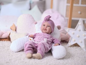 Hovoriace bábätko s mäkkým látkovým telom, ktoré po zatlačení na hrudník začne hovoriť „mama“, „papa“ a vydávať reálny zvuk plačúceho bábätka. Ruky a nohy sú k telu prichytené kĺbom. Bábätko je polohovacie a môže aj sedieť. Cumlík v balení slúži iba ako doplnok. Veľkosť 42 cm. Ručne vyrobené v Španielsku, balené v darčekovej krabici. Odporúčaný vek od 3 rokov. K bábätku je možné dokúpiť ďalšie originálne oblečenie z ponuky Llorens pre bábätká NEW BORN veľkosti 40-42 cm alebo 43-45 cm. Súčasťou balenia je 3 x gombíková batéria LR44 s návodom na jej výmenu. Batérie sú spotrebný tovar a preto ich vybitie nie je dôvodom na reklamáciu bábiky.