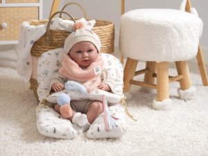 Hovoriace bábätko s mäkkým látkovým telom, ktoré po zatlačení na hrudník začne hovoriť „mama“, „papa“ a vydávať reálny zvuk plačúceho bábätka. Ruky a nohy sú k telu prichytené kĺbom. Bábätko je polohovacie a môže aj sedieť. Cumlík v balení slúži iba ako doplnok. Veľkosť 42 cm. Ručne vyrobené v Španielsku, balené v darčekovej krabici. Odporúčaný vek od 3 rokov. K bábätku je možné dokúpiť ďalšie originálne oblečenie z ponuky Llorens pre bábätká NEW BORN veľkosti 40-42 cm alebo 43-45 cm. Súčasťou balenia je 3 x gombíková batéria LR44 s návodom na jej výmenu. Batérie sú spotrebný tovar a preto ich vybitie nie je dôvodom na reklamáciu bábiky.