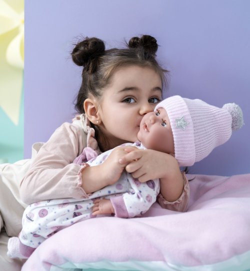 Mrkacie a hovoriace bábätko s mäkkým látkovým telom, ktoré po zatlačení na hrudník začne hovoriť „mama“, „papa“ a vydávať reálny zvuk plačúceho bábätka. Ruky a nohy sú k telu prichytené kĺbom. Bábätko je polohovacie a môže aj sedieť. Cumlík v balení slúži iba ako doplnok. Veľkosť 42 cm. Ručne vyrobené v Španielsku, balené v darčekovej krabici. Odporúčaný vek od 3 rokov. K bábätku je možné dokúpiť ďalšie originálne oblečenie z ponuky Llorens pre bábätká NEW BORN veľkosti 40-42 cm alebo 43-45 cm. Súčasťou balenia je 3 x gombíková batéria LR44 s návodom na jej výmenu. Batérie sú spotrebný tovar a preto ich vybitie nie je dôvodom na reklamáciu bábiky.