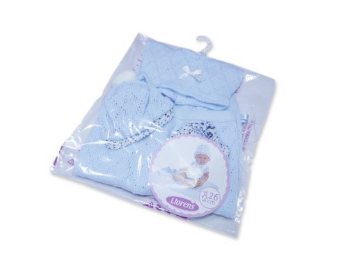 3dielny obleček s dečkou pre bábiku bábätko NEW BORN Llorens veľkosti 26 cm. Vyrobené v Španielsku, balené v igelitovom obale s plastovým alebo kartónovým ramienkom. Odporúčaný vek od 3 rokov.