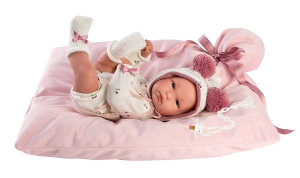 3dielny obleček s ozdobnou dečkou s mašľou pre bábiku bábätko NEW BORN Llorens veľkosti 35-36 cm. Vyrobené ručne v Španielsku, balené v igelitovom obale s plastovým ramienkom. Odporúčaný vek od 3 rokov.