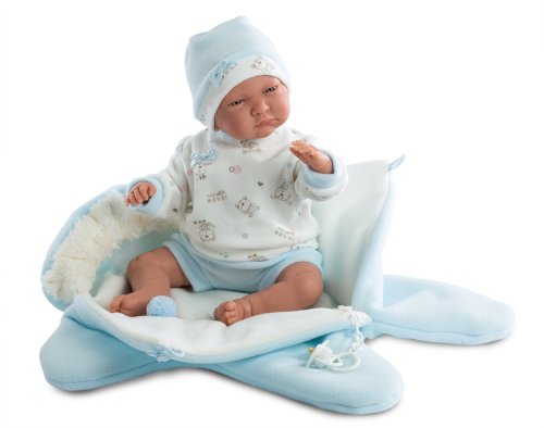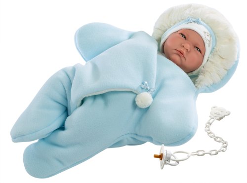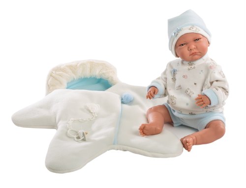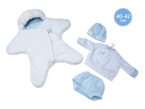 3dielny obleček s obojstranným fleecovým overalom v tvare hviezdy pre bábiku bábätko NEW BORN Llorens veľkosti 40-42 cm. Vyrobené v Španielsku, balené v igelitovom obale s plastovým alebo kartónovým ramienkom. Odporúčaný vek od 3 rokov.