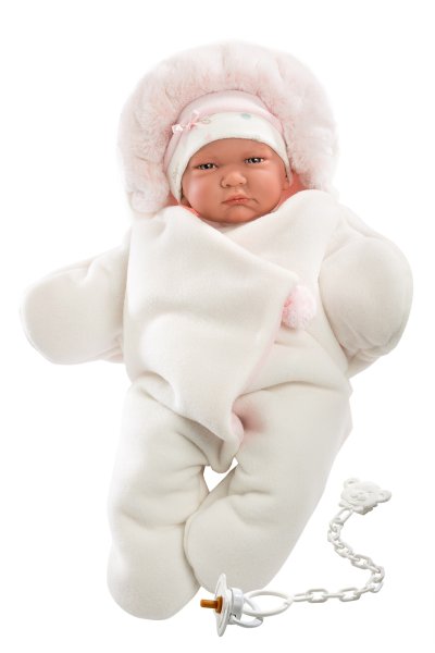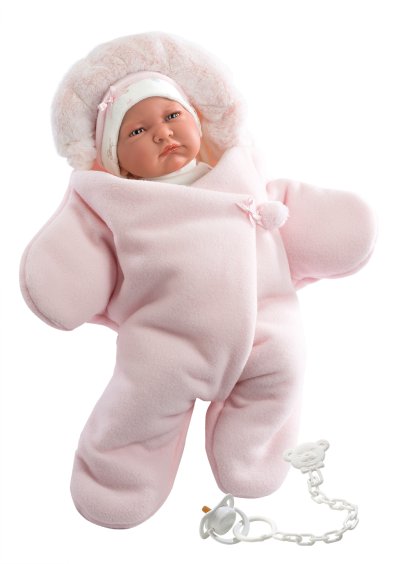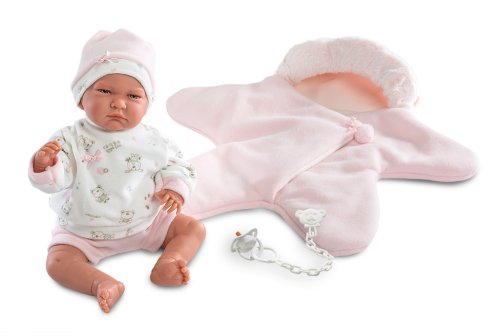 3dielny obleček s obojstranným fleecovým overalom v tvare hviezdy pre bábiku bábätko NEW BORN Llorens veľkosti 40-42 cm. Vyrobené v Španielsku, balené v igelitovom obale s plastovým alebo kartónovým ramienkom. Odporúčaný vek od 3 rokov.