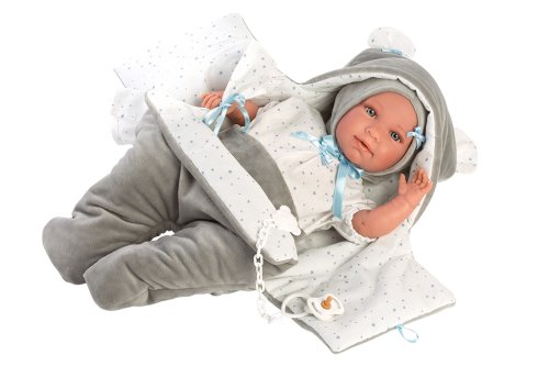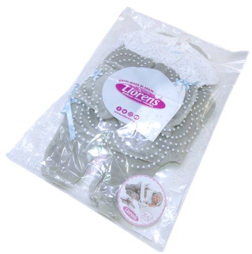 2dielny obleček so zamatovou rýchlozavinovačkou do autosedačky a ozdobnou vreckovkou pre bábiku bábätko NEW BORN Llorens veľkosti 40-42 cm. Vyrobené v Španielsku, balené v igelitovom obale s plastovým alebo kartónovým ramienkom. Odporúčaný vek od 3 rokov.