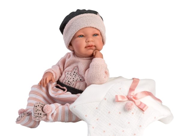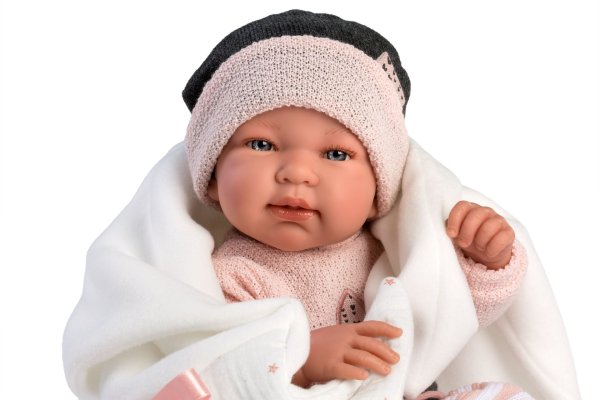 3dielny obleček s ozdobnou dečkou pre bábiku bábätko NEW BORN Llorens veľkosti 43-44 cm. Vyrobené v Španielsku, balené v igelitovom obale s plastovým alebo kartónovým ramienkom. Odporúčaný vek od 3 rokov.