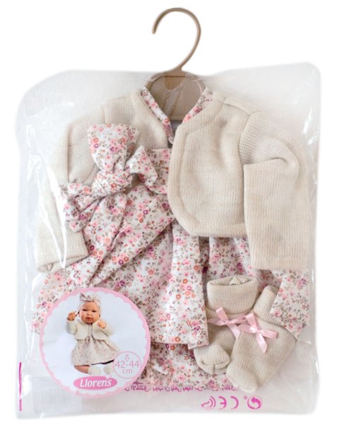 5 kusov oblečenia pre bábiku bábätko NEW BORN Llorens veľkosti 43–44 cm. Vyrobené ručne v Španielsku, balené v igelitovom obale s plastovým ramienkom. Odporúčaný vek od 3 rokov.