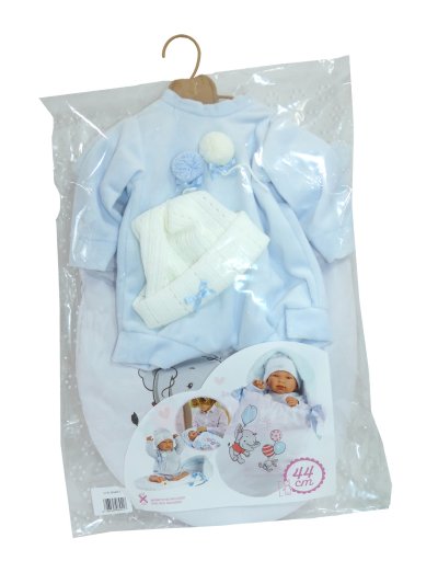 2dielny obleček s fusakom pre bábiku bábätko NEW BORN Llorens veľkosti 43-44 cm. Vyrobené ručne v Španielsku, balené v igelitovom obale s plastovým ramienkom. Odporúčaný vek od 3 rokov.