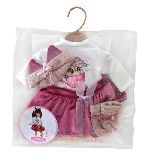 4 kusy oblečenia pre bábiku Llorens veľkosti 40 cm. Vyrobené ručne v Španielsku, balené v igelitovom obale s plastovým ramienkom. Odporúčaný vek od 3 rokov.
