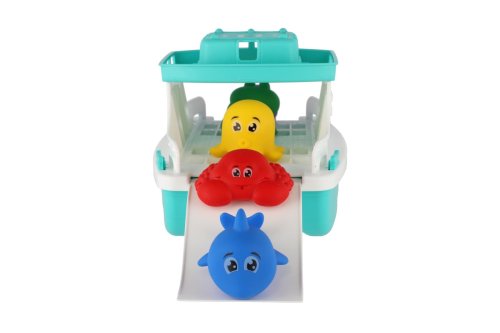 Veselá loďka do vody plná farebných zvieratiek. Tento trajekt z odolného plastu je ideálny pre kúpaciu zábavu vo vani, bazéne aj na pieskovisku. Deti si zamilujú jeho pohyblivú nájazdovú rampu aj roztomilé morské zvieratká s tvárou, ktoré môžu voziť, skladať a znovu naložiť podľa svojej fantázie. Vďaka jemným farbám, zaobleným tvarom a bezpečnému spracovaniu je hračka vhodná aj pre menšie deti. Podporuje koordináciu, motoriku a kreatívnu hru – či už na mori alebo vo vani. Rozmery výrobku 16 x 16 x 25 cm Vhodné pre deti od 12 mesiacov