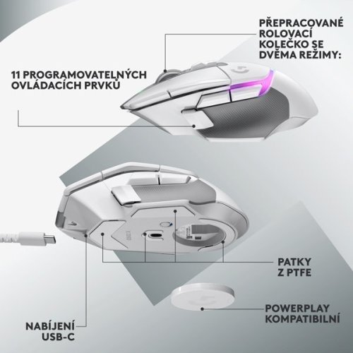 Myš G502 X LIGHTSPEED je kompatibilný s technológiou POWERPLAY. Zostáva stále nabitá, pri nečinnosti aj počas hrania, vďaka jedinečnému riešeniu bezdrôtového nabíjania (predáva sa samostatne). Už sa nikdy nestarajte o výdrž batérie!