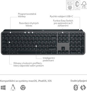 Logitech MX KEYS S grafitová bezdrôtová podsvietená klávesnica