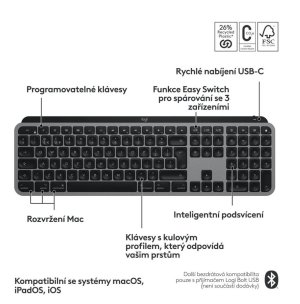 Logitech MX Keys S for Mac CZ/SK bezdrôtová klávesnica vesmírne šedá