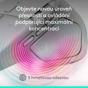 Nový Darkfield senzor s rozlíšením až 8000 DPI umožňuje snímanie na akomkoľvek povrchu, vrátane skla. Quiet Clicks technológia zaisťuje o 90% tichšie klikanie s hmatovou odozvou. MagSpeed koliesko umožňuje plynulý aj rýchly posuv až 1000 riadkov za sekundu.