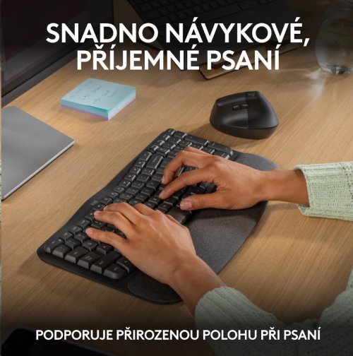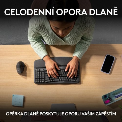 Umiestnite si ruky pri písaní do prirodzenej polohy. Vďaka zakrivenému prevedeniu klávesového rámu si na klávesnicu Wave Keys okamžite zvyknete.