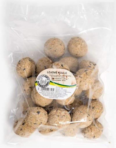 Po lojových guliach v sieťkach zostávajú na záhrade prázdne sieťky, ktoré treba upratovať. Skrmovaním lojových gulí bez sieťky si tak nielen ušetríte prácu, ale správate sa ohľaduplne k životnému prostrediu. Navyše prázdne sieťky môžu byť nebezpečné aj pre psov, ktorým vonia tukom a radi ich žujú. Pri požití sieťky ale môžu mať zdravotné problémy. Lojové gule sú tradičným zdrojom potravy, ktorý pomáha mnohým vtákom prežiť v chladných zimných mesiacoch v človekom zmenenej krajine. Vďaka vysokému obsahu tuku lojové gule dodávajú vtákom energiu, ktorú potrebujú na udržanie telesnej teploty v mrazivých dňoch a celkovej dobrej kondície počas zimného obdobia. Lojové gule bez sieťky je možné buď vložiť voľne do bežných kŕmidiel alebo použiť špeciálne krmítka na lojové gule (napr. ZB004990 alebo ZB004019), ktoré vám umožnia aj ľahšie pozorovanie vtákov pri ozobávaní lojových gulí. Lojovými guľami možno vtáky prikrmovať celoročne, okrem veľmi teplého letného obdobia. Zloženie: obilniny, loj (min. 15%), semená, vápnik Balenie: 25 ks lojových gulí v plastovom vreci.