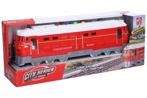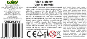 Vlak na zotrvačník s efektmi. Rozmery 34x6,5x10 cm.