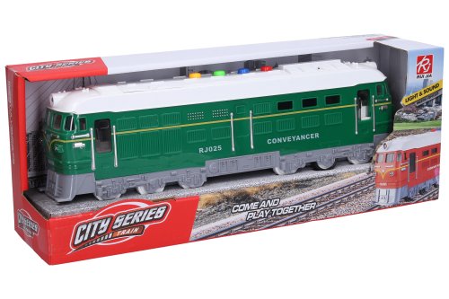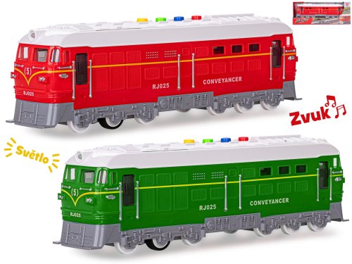 Lokomotíva 34 cm na zotrvačník na batérie so svetlom a zvukom - mix farieb (zelená, červená)