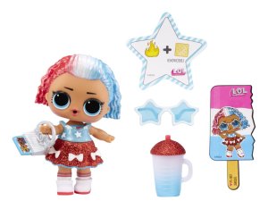 LOL Surprise! Letná séria je perfektná príležitosť, ako osláviť príchod leta. Séria je dostupná iba po obmedzenú dobu, tak sa ponáhľaj! Získaš postavičky a balenie v špeciálnej edícii. Obsah balenia: • 1 z 2 postavičiek z limitovanej edície • 7 prekvapení s kombinovateľnými doplnkami • guľa s prekvapením z limitovanej edície • zberateľský plagátik Veľkosť LOL bábiky: cca 8 cm. Poznámka: Jedná sa o jednodruhové produkty, v balení je vždy jedna z dvoch postavičiek, ktorá je zobrazená na obale