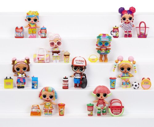 LOL . Surprise! sa spojilo s ikonickým výrobcom sladkostí a spoločne s Haribo vám prináša bábiky, ktorých doplnky sú inšpirované Haribo sladkosťami. Keď dáš bábike napiť, niektorá bude pľuvať vodu.