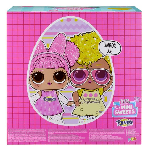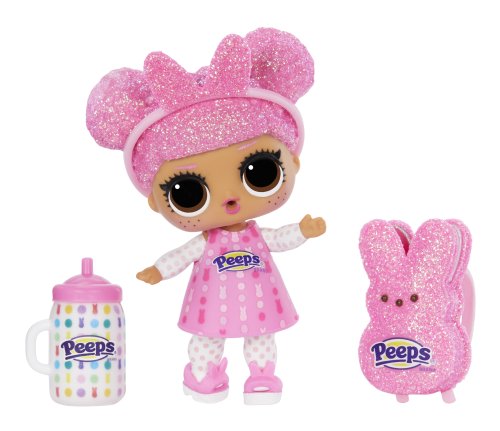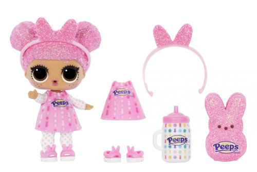 Predstavujeme limitovanú edíciu LOL . Surprise! Loves Mini Sweets - Peeps! LOL . Surprise! sa spojilo so značkou cukroviniek Peeps, aby vám priniesla najdivokejšiu jar všetkých čias. Každá bábika má jedinečný štýl s trblietavými detailmi, ktoré ladia s obľúbenými cukrovinkami Peeps! Rozbal 7 prekvapení a jednu z dvoch bábik Tough Chick alebo Cute Bunny. Keď dáš bábike napiť z fľašky, bude pľuvať vodu.
