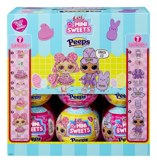Oslávte jar s LOL . Surprise! bábikami teraz v spolupráci so značkou Peeps. Môžeš získať fialovú Bunny alebo ružovú Chick bábiku. Z každej gule vybalíš viac ako 7 prekvapení.