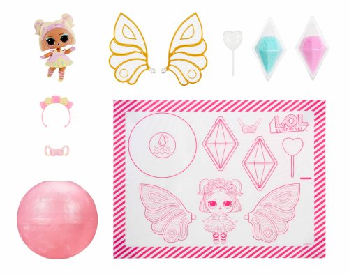 Pomôžeš LOL . Surprise! bábikám premeniť sa na malé víly? Bábika potrebuje vyrobiť krídla v niekoľkých jednoduchých krokoch. Polož krídla na rovnú podložku . Nasypaj farebný víli prach do krídiel (použi svoju predstavivosť a kreativitu). Pipetou z balenia nakvapkaj vodu do krí del . doplnkyV sérii môžeš zozbierať 8 bábik. Obal slúži ako stojan na vystavenie víly.