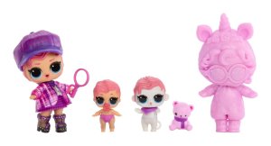 Veľkosť LOL bábiky cca 8 cm, sestričky cca 4 cm, zvieratká cca 6 cm.