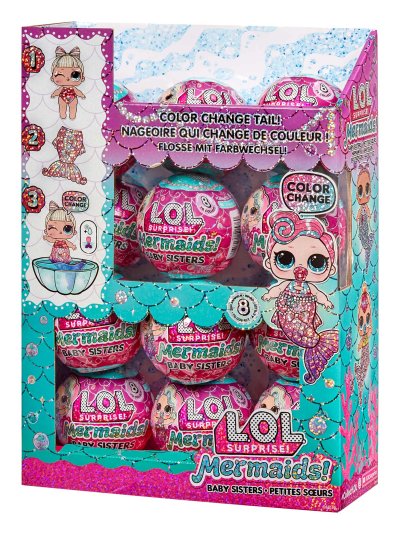 Urob zo svojej LOL sestričky morskú pannu! V balení nájdeš chvostovú plutvu, ktorá mení farbu v ľadovej vode. Plutva stačí sestričke nasadiť. Bábiku s plutvou môžeš vystaviť na obale. Obal pripomína otvorenú mušľu.
