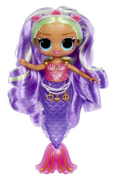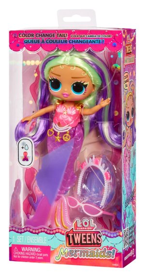 Predstavujeme 4 nové LOL . Surprise! Tweens nezbedné bábiky, ktoré sa premenili na morské panny s nádherne farebnou plutvou, ktorá mení farbu, keď ju ponoríš do ľadovej vody. Bábika dokáže na plutve stáť. V balení nájdeš množstvo tematických doplnkov.