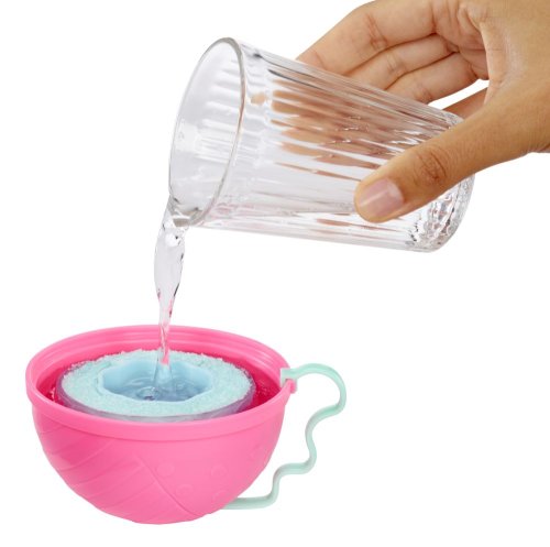 Obsah balenia:? • 1 bábika • 1 módny doplnok • 1 pár topánok • 1 – 2 doplnky • 1 tortová forma • 3 vrecká s ingredienciami na výrobu šiat • 1 vrecko s trblietkami • 1 obal v tvare gule