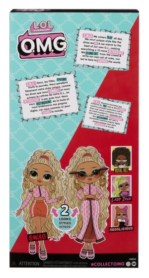 Obsah balenia:? • 1 zo 4 OMG Veľkých séger • mnoho prekvapení, vrátane rôznych módnych doplnkov • kefa na vlasy • stojan pre bábiku