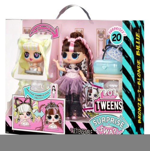 Získaj 4 nové divoké a štýlové Tweens bábiky. V balení s bábikou nájdeš mini česaciu hlavu a rôzne vlasové doplnky, vďaka ktorým vykúzliš dokonalý účes. Bábike môžeš vymeniť hlavu podľa toho, aký štýl sa bude hodiť k jej outfitu. Česacia hlava má iný výraz tváre, inak farebné a inak upravené vlasy. Môžeš kombinovať medzi všetkými Swap Tweens bábikami.