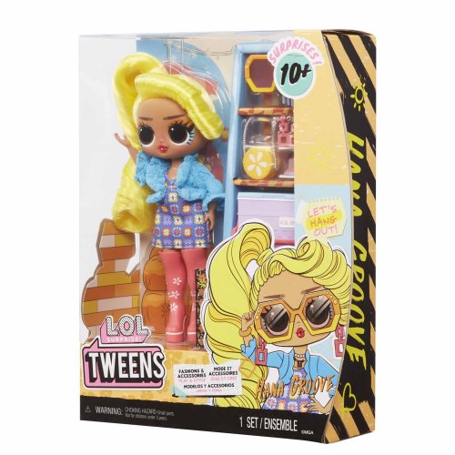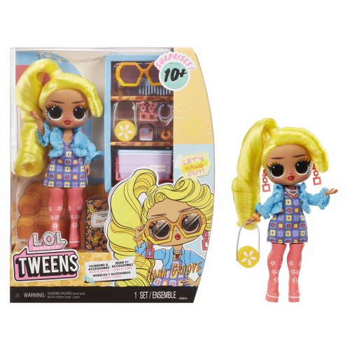 Predstavujeme 4 nové LOL . Surprise! Tweens nezbedné bábiky. Tweens prichádzajú s 10 prekvapeniami vrátane jedinečných oblečkov a roztomilých doplnkov. Získaj všetky 4 najlepšie kamarátky! Obsah balenia: • 1 bábika Tweens s pohyblivými kĺbmi • 10 rôznych doplnkov vrátane nádherných oblečkov, topánok, kefy na vlasy, časopisu a stojana pre bábiky Veľkosť bábiky Tweens: cca 16,5 cm.
