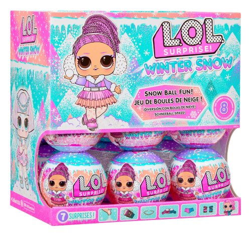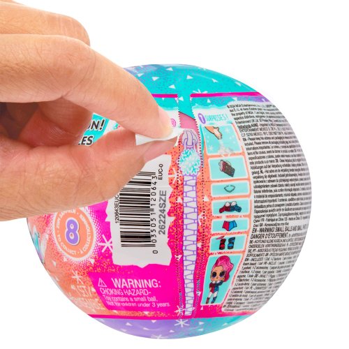Rozbal jednu z ôsmich obľúbených LOL . bábik v zimnom outfite. Bábiky majú vo vlasoch trblietky, a pokiaľ dáš bábike napiť, môžeš sledovať, ako sa trblietky vo vlasoch hýbu a usadzujú. Polovica balenia obsahuje kinetický piesok, v ktorom sú ukryté doplnky, av priehľadnej guli piesok vyzerá ako sneh. Obsah balenia: 1 bábika, 1 outfit, doplnky. Veľkosť LOL . bábiky: cca 8 cm. Vek 3+