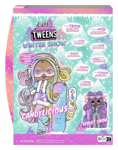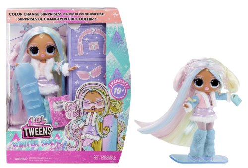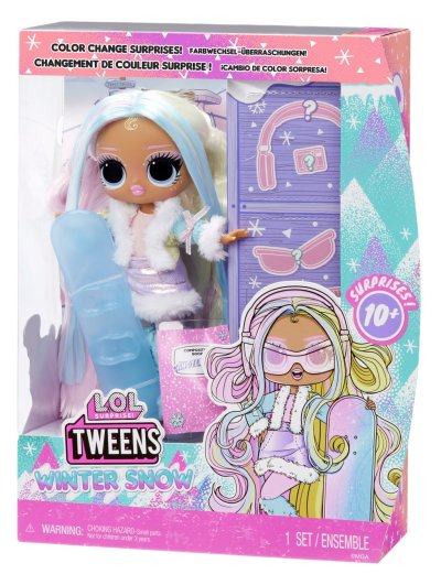 Uži si zimnú dovolenku štýlovo s úplne novými Zimnými Tweens bábikami. Sú to veľké sestry menších LOL bábik BonBon a Snow Jamz! Rozbaľ niekoľko prekvapení so zimnou tematikou. Prvá Tweens bábika má rozkošného kulicha s ušami, zimnú bundu s mašľami, štýlové návleky na nohy, trendy snowboard, lyžiarske okuliare, slúchadlá s otočnými náušníkmi, príslušenstvo k fotoaparátu, kabelku a ďalšie! Druhá má roztomilé klapky na uši, módny svetrík s rukávmi, trendy fialovú vestu, štýlové dúhové zimné nohavice, elegantné lyžiarske okuliare, roztomilé ružové lyže a paličky, doplnok k telefónu, fialovú kabelku a ďalšie!