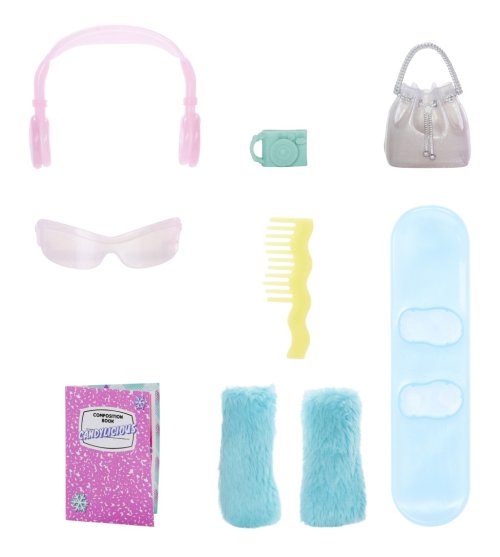 Obsah balenia: • 1 bábika Tweens s pohyblivými kĺbmi a česateľnými vláskami • rôzne doplnky so zimnou tématikou • snowboard alebo lyže s paličkami, ktoré menia farbu