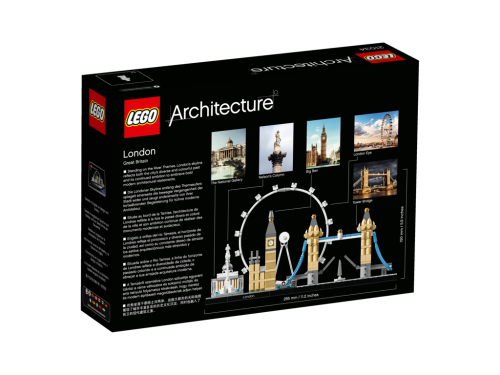 Zachyť architektonickú podstatu Londýna s touto úžasnou sadou, ktorá zvádza dohromady ikonickú Národnú galériu, Nelsonov stĺp, vyhliadkové Londýnske oko, veža Big Ben (tzv. Alžbetinu vežu) a most Tower Bridge. Každá LEGO budova je navrhnutá tak, aby poskytla výnimočný staviteľský zážitok vďaka reálnym farbám a vďaka tomu, že sú všetky budovy v rovnakom meradle. Londýnska rieka Temža je tu spodobnená pomocou základnej dosky, ktorá dodáva tomuto skvelému modelu pocit autenticity.