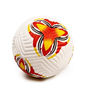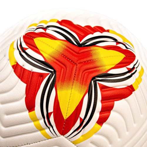 Dynamický Design: Lopta sa vyznačuje atraktívnym bielym základom s výraznými grafickými prvkami v kombinácii červenej a žltej farby. Tento moderný dizajn zaručuje, že lopta bude na ihrisku dobre viditeľná.