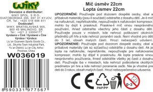 Lopta gumová nenafúknutý úsmev 22 cm. 6variant.