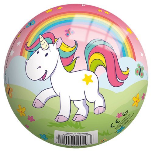 Kvalitná lopta z PVC s motívom jednorožca s priemerom 130 mm.