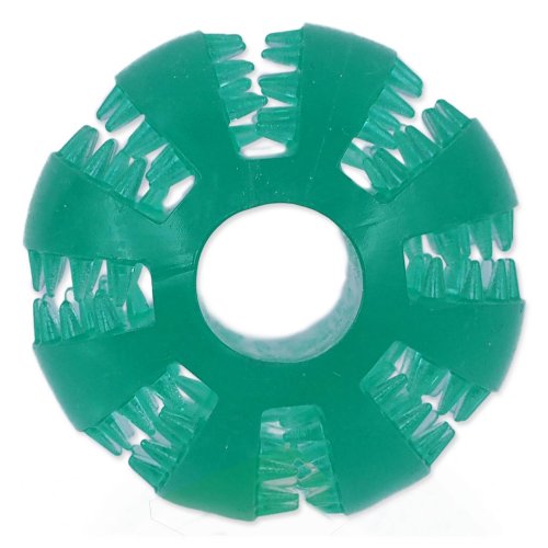 Dentálna hračka pre psov. Špeciálne drážky pomáhajú proti tvorbe zubného kameňa a masírujú ďasná. Zvyšujú u psa záujem o hračku, pretože hryzenie je pre neho príjemné.