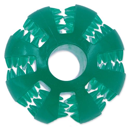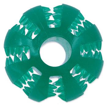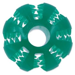 Dentálna hračka pre psov. Špeciálne drážky pomáhajú proti tvorbe zubného kameňa a masírujú ďasná. Zvyšujú u psa záujem o hračku, pretože hryzenie je pre neho príjemné.