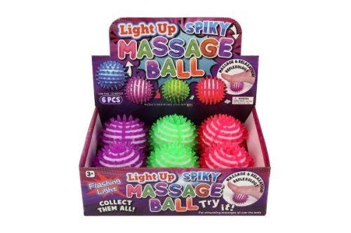 Loptičky sú skvelou pomôckou pri rehabilitácii alebo masáži na uvoľnenie natiahnutých či zablokovaných svalov a tiež môže fungovať ako antistresový. Vďaka masáži loptičkou s bodlinkami sa ľahšie ľahšie zbavíte nadmerného pnutia chodidiel, šije alebo boľavých svalov. Loptička je gumová, so svetlom. Veľkosť loptičky: 8 cm